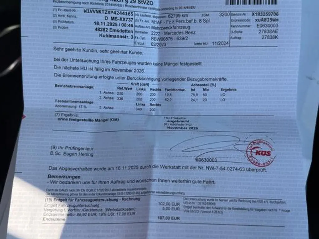 Voertuiggegevens van deze Mercedes-Benz V-Klasse