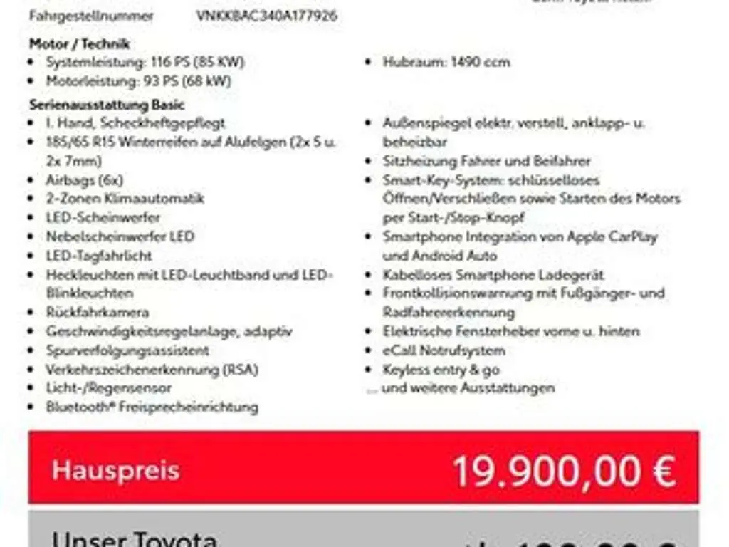 Voertuiggegevens van deze Toyota Yaris