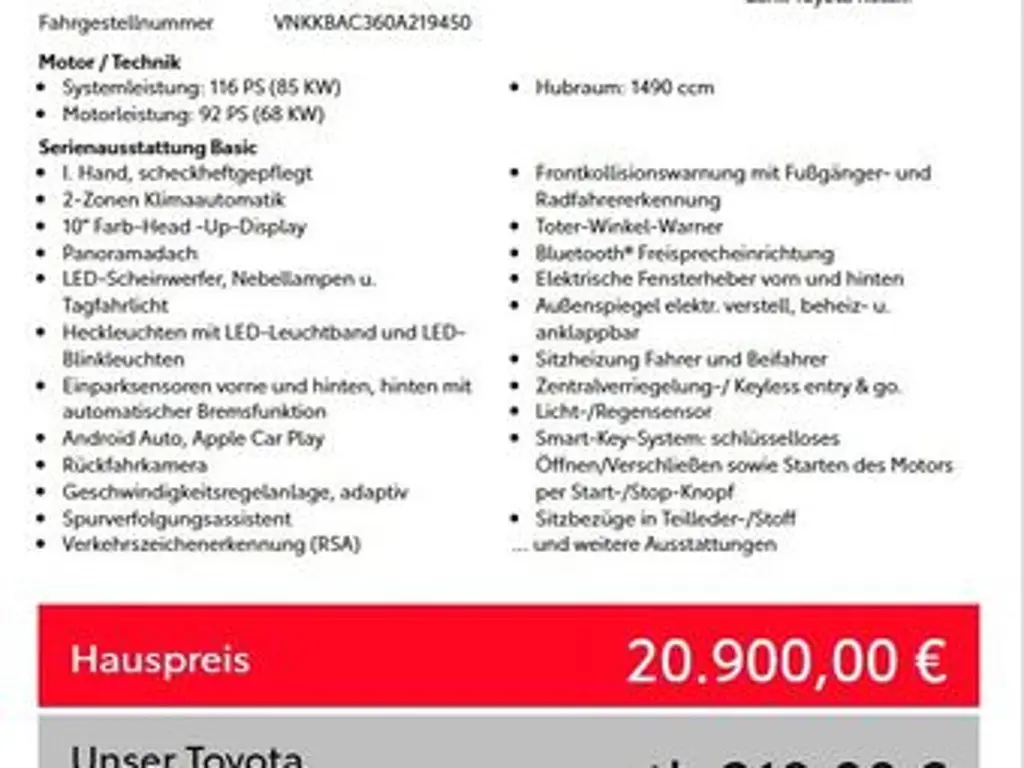 Voertuiggegevens van deze Toyota Yaris
